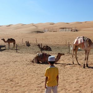 砂漠は想像していたものより、家が身近にあったり、意外と植物生えてるんだなと思いましたが赤いサラサラとした砂です。波紋が広がり綺麗でしたよ。オマーニの家族がキャンプをやっていました。それからキャメルライドは3リアル。