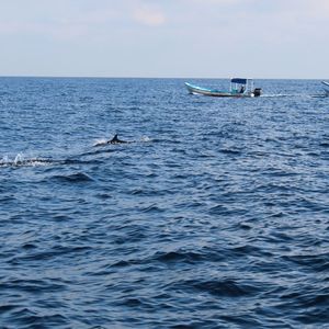 みんなでイルカを探しながら、沖合へ。