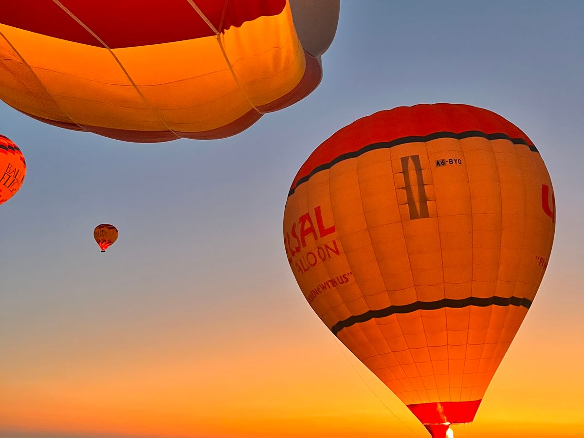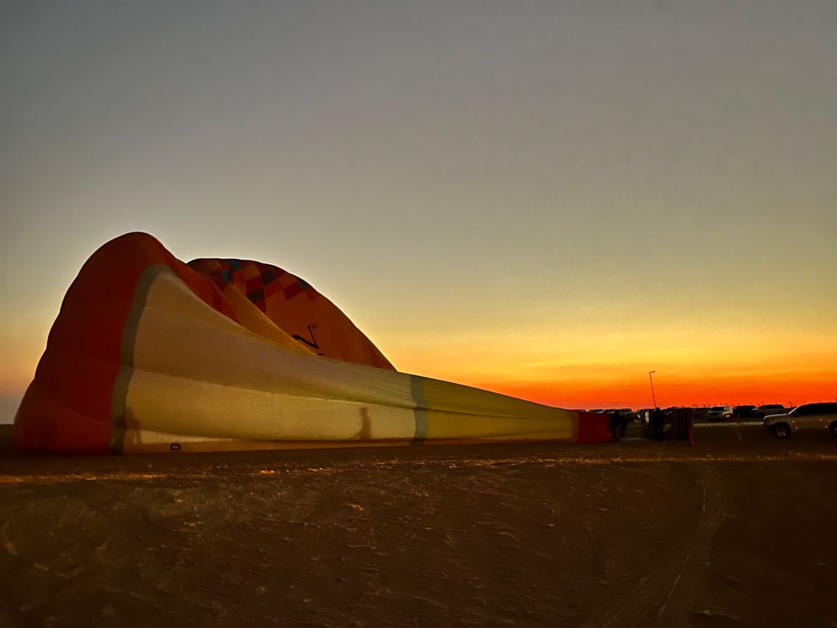 気球に乗るのは初体験でしたが、アラブにてそれを体験できて良かったです。乗り方が独特で、かごを横にした状態で寝そべって、気球が膨らむのを待ちます。スカートではなく、パンツスタイルが絶対マストです。また、夜明け前ですので、防寒は必ずしましょう!ホッカイロを使いました!