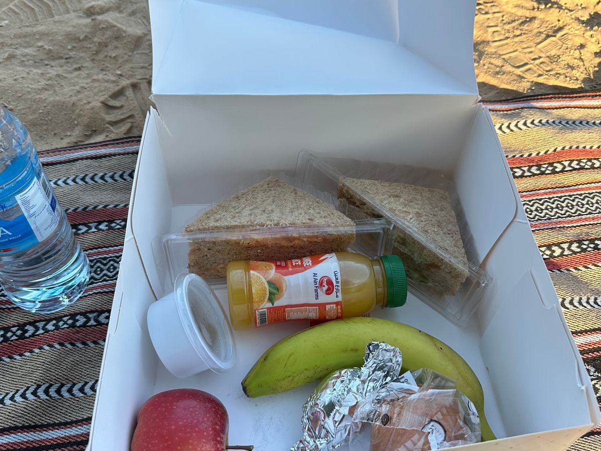 日の出を見て、サンドスキーやデザートサファリを体験して、すてきな景色を見ながら朝食をとりました。