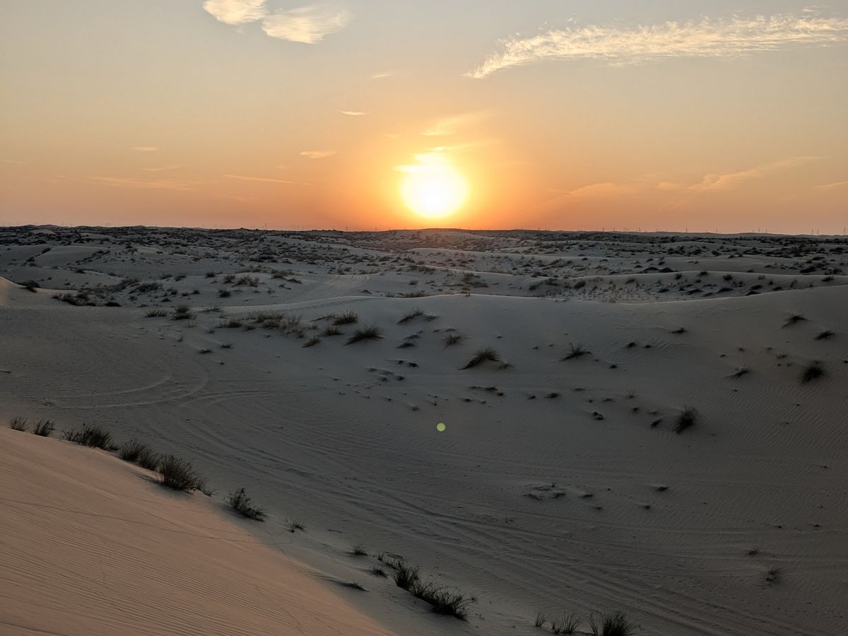 きれいな朝焼けと雲の切れ間からでしたが、初日の出をドバイ砂漠で見ることができました。貴重な体験をさせて頂きました。