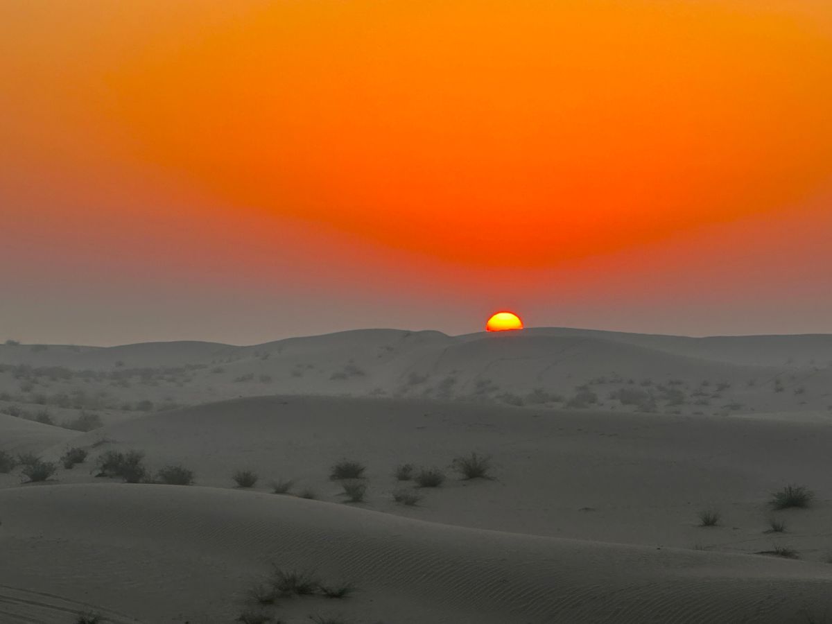 砂漠での夕陽はとても美しく、思い出に残りました。