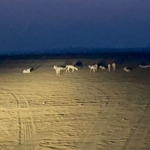 まず、砂漠といっても、Vivantでみたような砂漠ではなく、草が生えています。砂の風紋?ありません。見えるのは4WDの轍だけです。夕焼け、綺麗ですが、その方向に送電線が走っています。