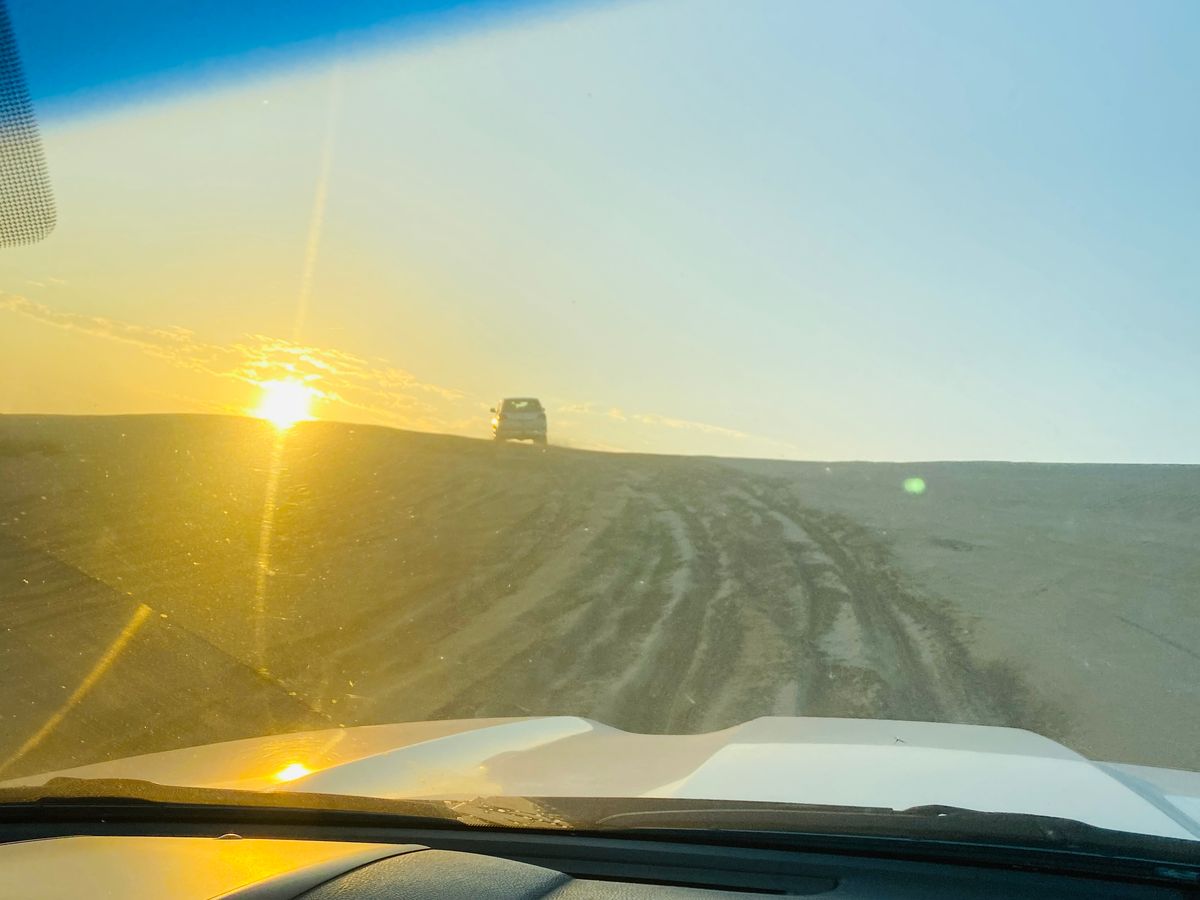 その後、タイヤの空気を抜き砂漠へ。中々激しく酔いやすい人は酔い止め必須。途中で砂漠に出て写真タイム。とても綺麗な夕日が見れました。ただ、砂はめちゃめちゃつきます笑 汚れてもいい服でいきましょう。