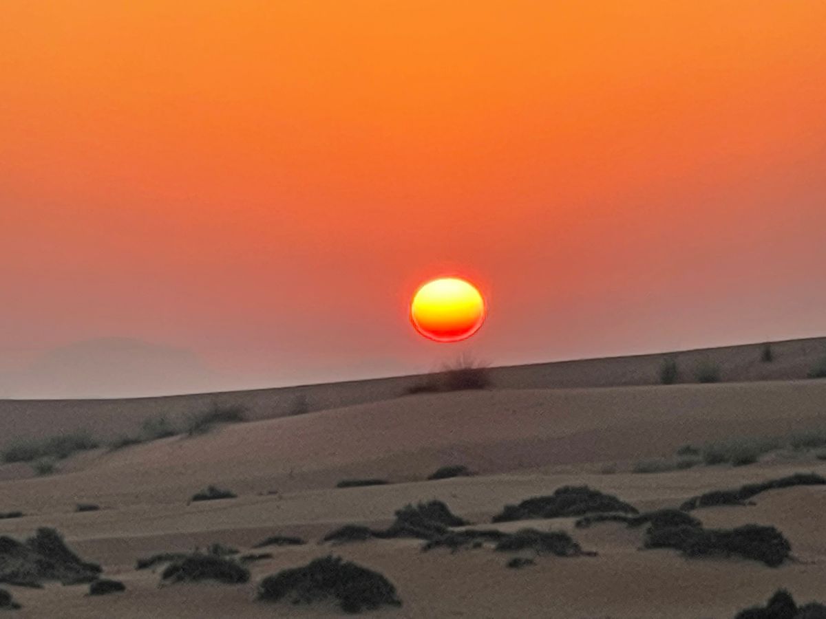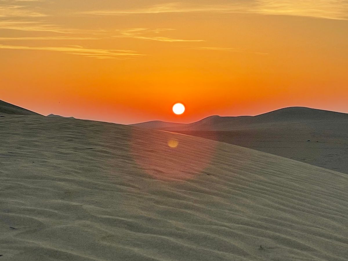 アラビアオリックスなどの動物を見つつ、スポットへ移動→朝日をゆっくり鑑賞。(半袖では肌寒かった)