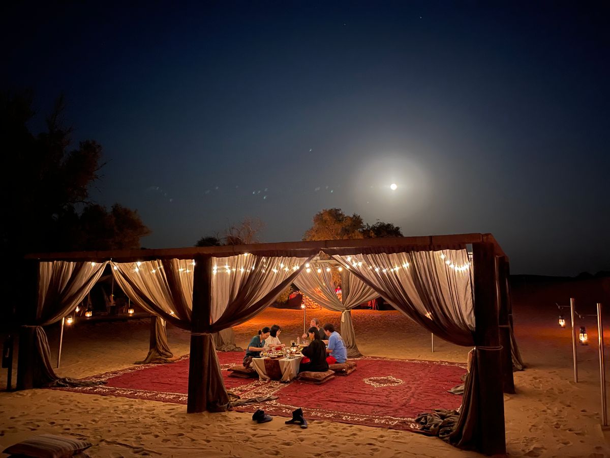 オーバーナイトのデザートサファリは、今までに体験したことがない世界を堪能できました。スタッフのイスマイルさんは、献身的にサービス、例えば、ラクダレースの会場に寄って頂いたり、動物の近くまで車を寄せてくれたりなど、とてもサービス精神旺盛な優しいガイドでした。ラクダレースの会場は、飛行場ぐらいの大きさだったのには、驚きでした。また、いろいろなところで写真を撮って頂きましたが、プロフェッショナルと思えるくらい、よい写真を沢山とってくれました。とても良い思い出になりました。車の運転も上手く、広い砂漠をジェットコースターのように楽しませてくれました。夜の砂漠の散歩では、サソリを探しや夜の動物探しなど楽しませてくれました。韓国、アメリカなど他の国のパーティの方と一緒になり、良い親交ができました。そのスタッフさんもみな面白く、とても充実したツアーでした。ドバイに来られる方は、おすすめです。