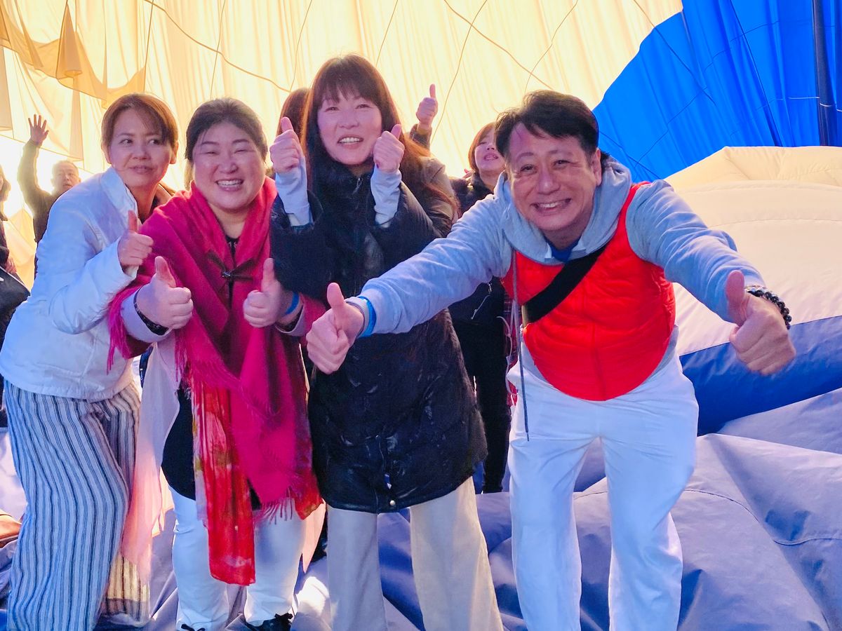 徐々に熱気を吹き込みみるみる気球が膨らんで