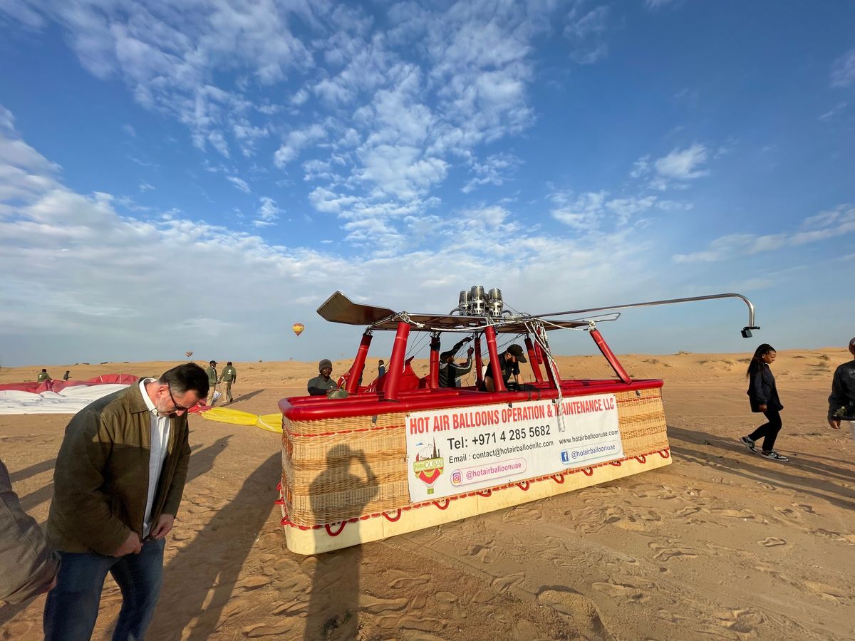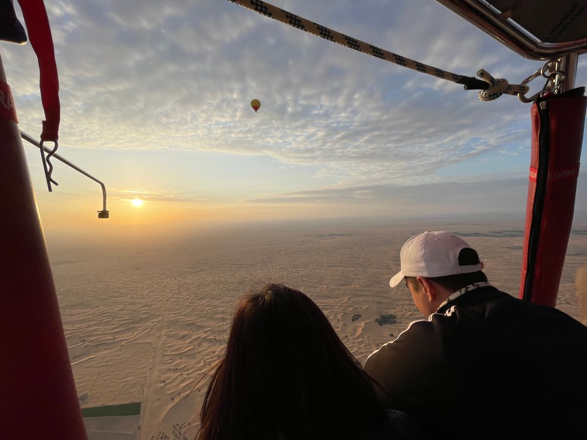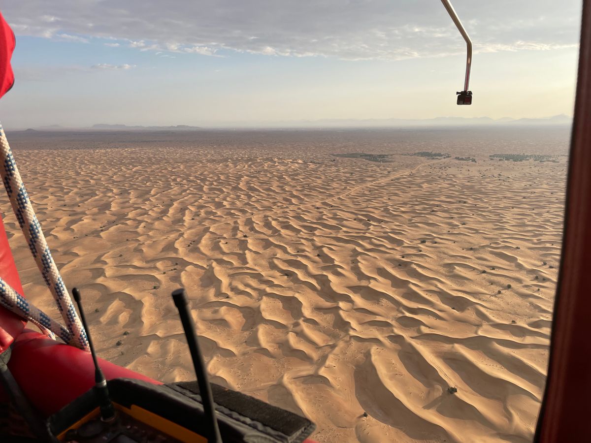 風が強く、出発するまでに30分遅れたため日の出後の出発となりました。約2時間の空の旅で、上空1000メートルからの砂漠の景色は最高です。