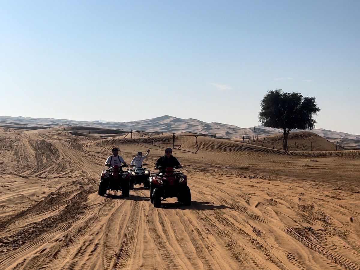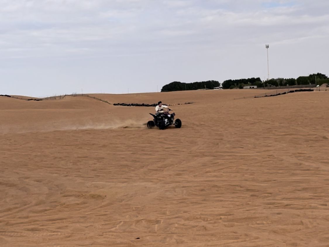 最初にドライバーが車で砂丘コースを走り回ってくれます。高低差のある砂漠を駆け抜けるアトラクションはまさにデザートサファリの真骨頂と言ってもいいでしょう。10分〜15分ほど上下左右に振られるので酔いやすい人は酔い止め必須です。その後はサンドバギー体験ができ、1人乗りのバギーに乗って自分で敷地内をドライブすることができます。推定時速60キロメートルでの砂の上のドライブはたまらなく楽しいです。ドリフトし放題です。