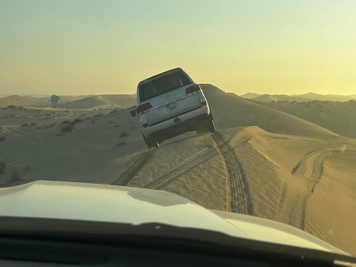 前日にドバイに到着し、飛行機酔いや時差ボケで体調が悪かったのですが、砂漠アクティビティを経験したくてこちらの貸切チャーターでお願いしました。緩め運転とお伝えしていなかったのですが、酔わないように調子を見ながら運転してくださり、酔い止めのおかげもあってか最後までアクティビティを楽しむことができました。BBQのキャンプやラクダ乗りなども全て体験でき、運転してくださった方も親切でした。