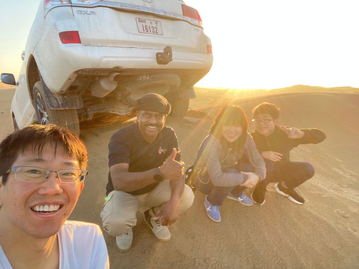6〜7台程のSUVで連なって砂漠を走って行きますが、途中蟻地獄のような場所を旋回したり、急斜面を滑り降りたりしました。めちゃくちゃ面白いですが、三半規管の弱い人は酔い止め必須です。