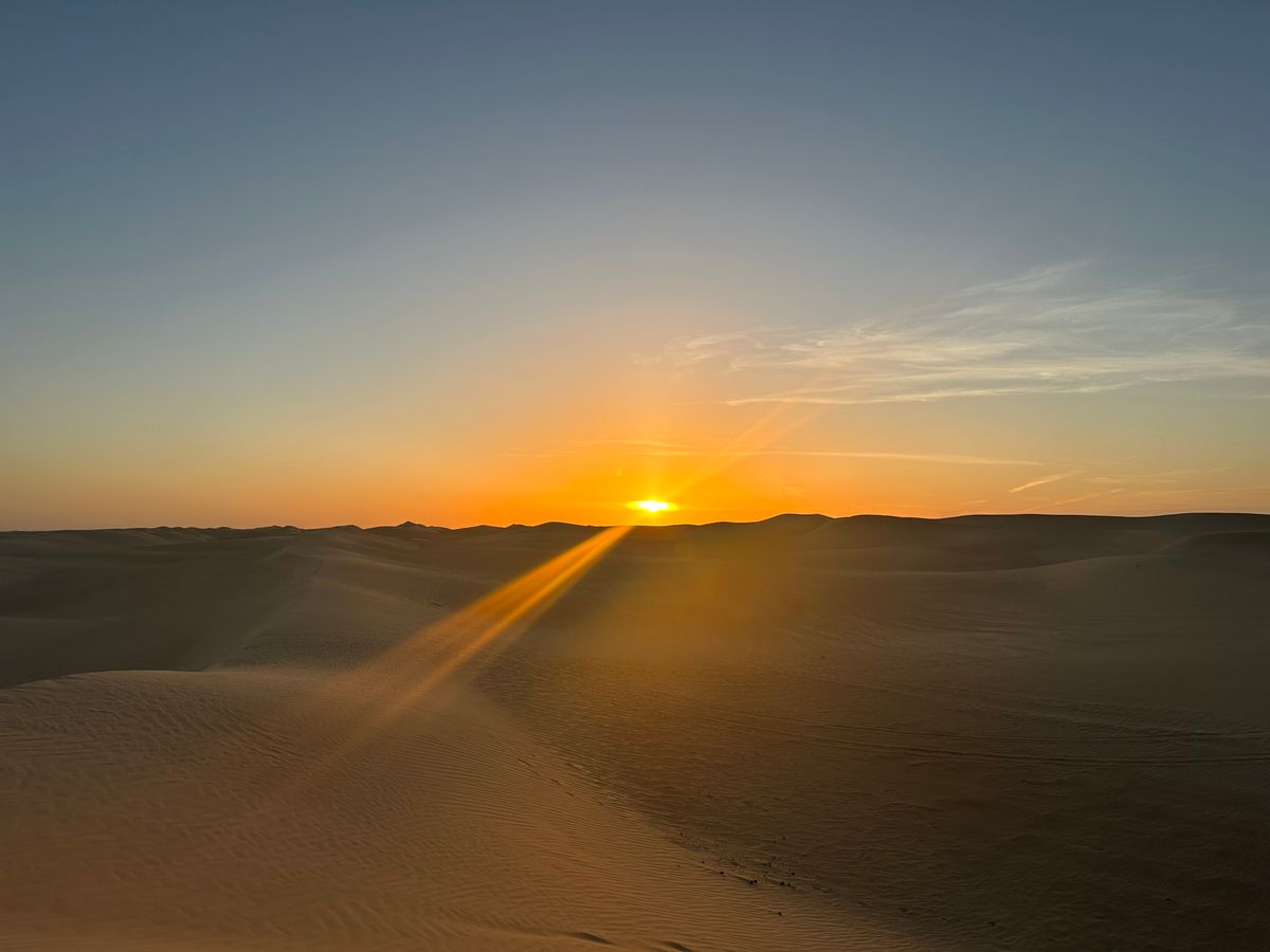 目的地の砂丘に着いたら朝焼けの中アラビアコーヒーとダーツをもてなしてもらいながら朝日を待ち、明るくなってからはサンドボードで遊ばせてもらう。