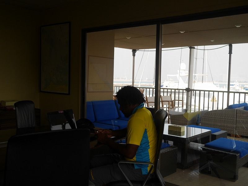 しかし、言われた場所へ進んでも、今度はオフィスが見つからないとタクシーは行ったり来たり。面倒になって降りて、マリーナ内を探すと2階立ての建物があって中に入って”イエローボート“と言うと、扉の中だと部屋に通してくれました。