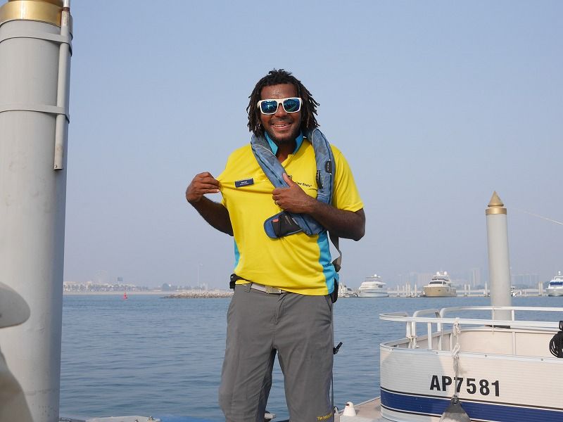 妹と一緒に参加しました。7月初旬のドバイだったので、暑さもあって参加したのは、私達だけでしたが、おかげでボートの先頭に乗り、楽しむことができました(笑)