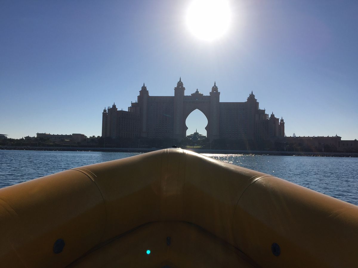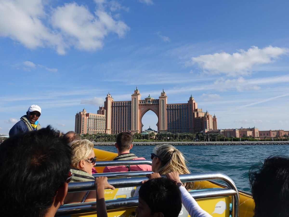 アトランティスザパームの向こうまで行き、撮影スポットでは持参のiPhoneで何枚か撮影してくれます。外洋に出た途端にスピードを上げるので一番前に座っていると、かなりバンバンとボートが跳ねてちょっと怖いですがスリリングです。