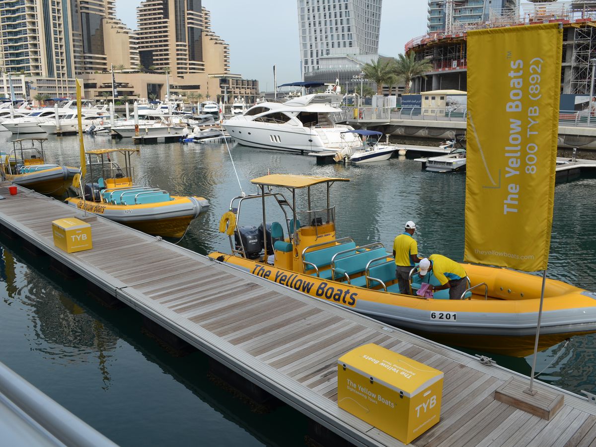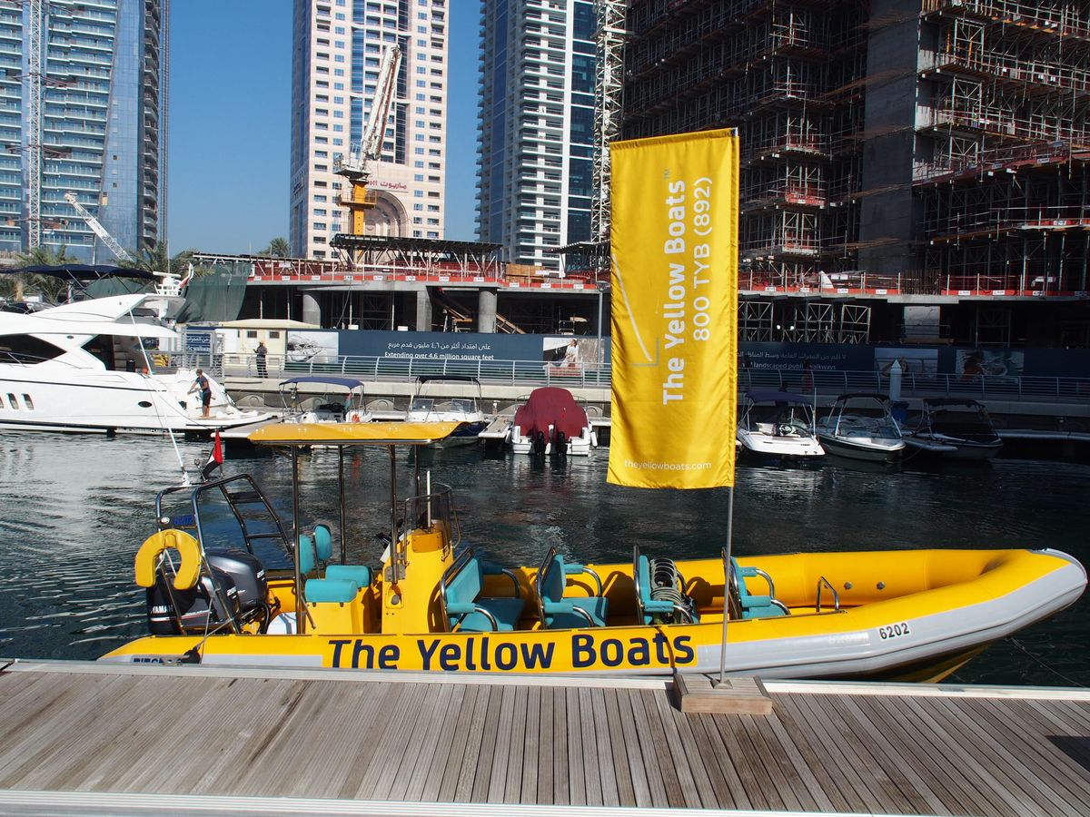 集合場所はわかりにくいですが、ドバイマリーナウォークにある、スピニーズというスーパーの正面の広場です。黄色の、the yellow boat と書かれた船が停泊しているので、おそらくわかるかと思います。