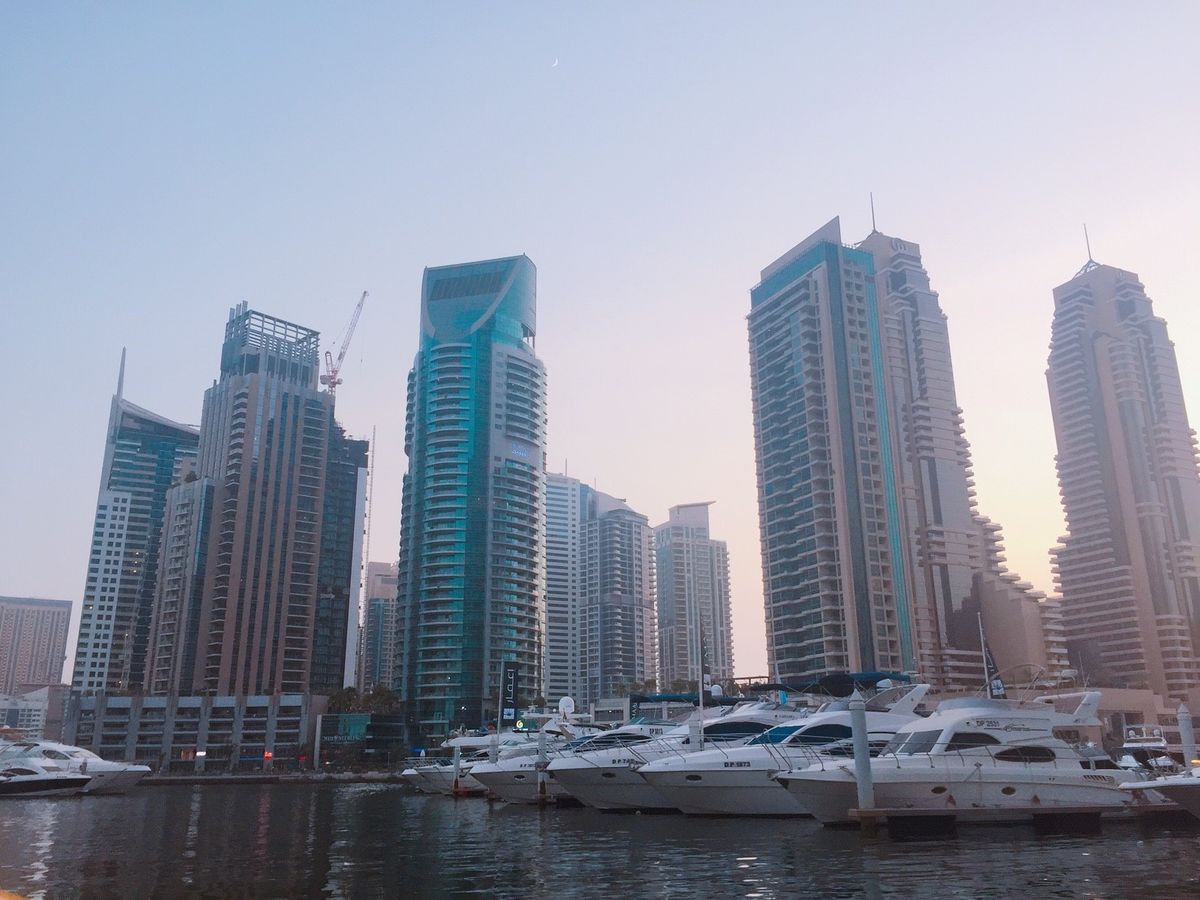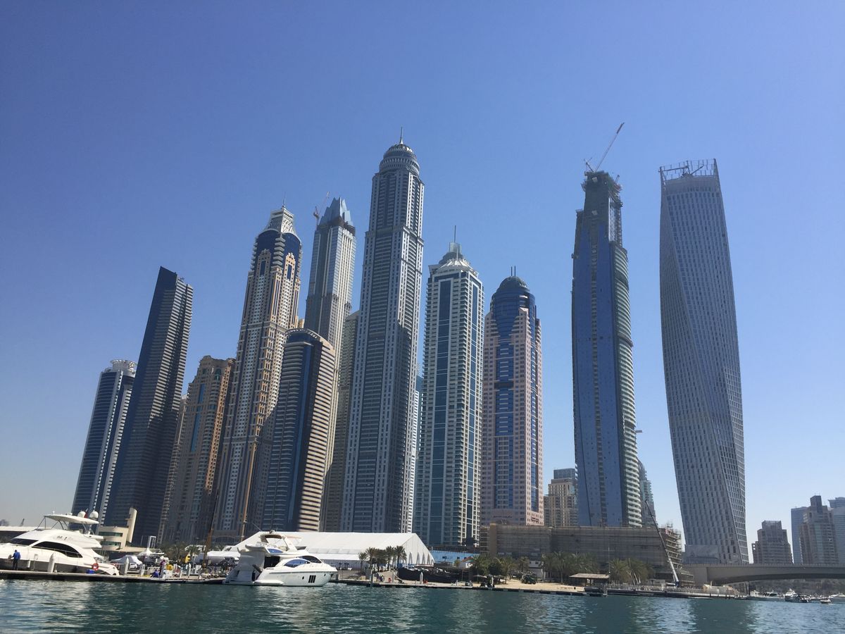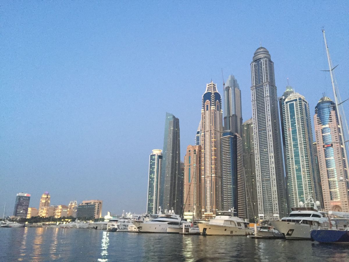 ドバイ・マリーナから見るビルはとてもキラキラしていてきれいです。また、建設中のビルもたくさんあって"まだまだ開発中なんだ"と実感しました。