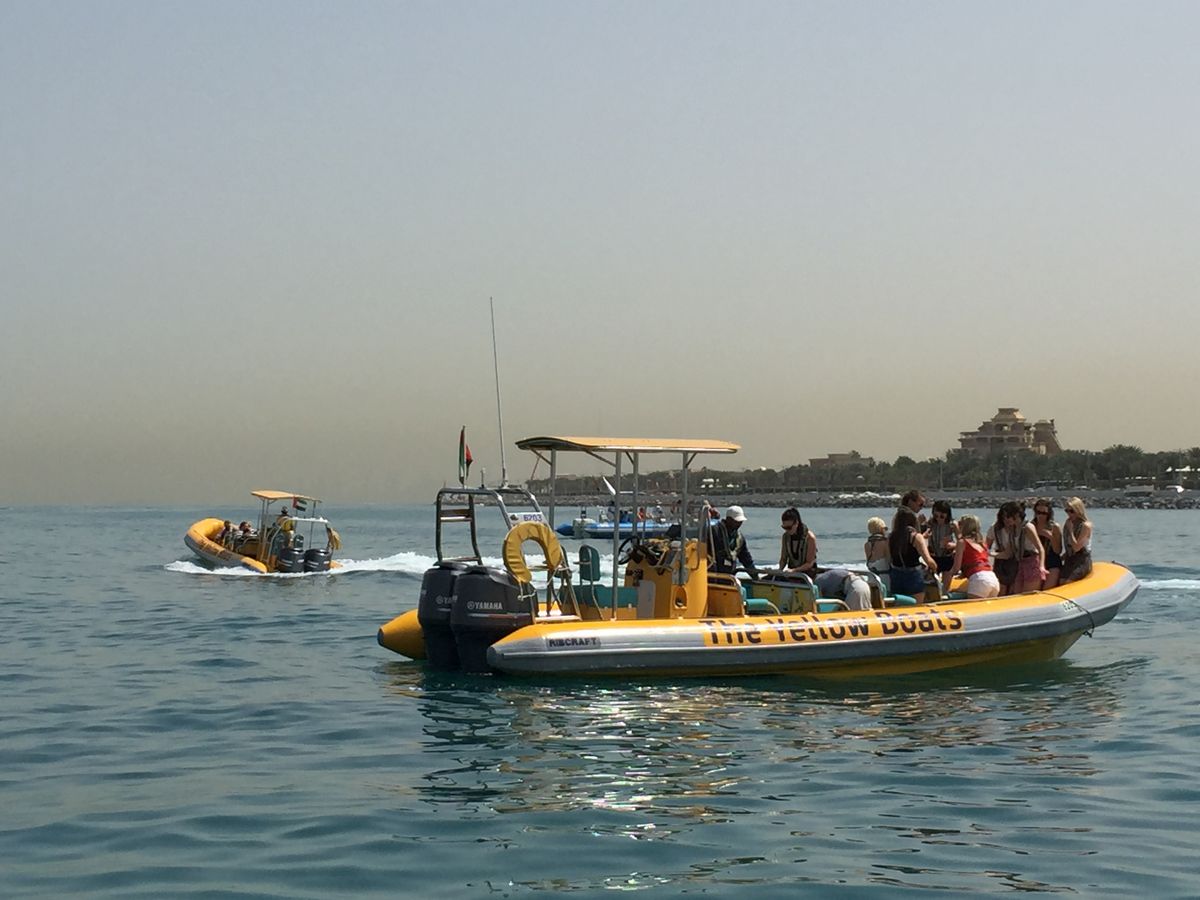 マリーナから出発してマリーナ内はゆっくり周りの高層ビルの写真など取ることが出来ます、マリーナから出るといきなりスピードアップでスリル満点Palm Jumeirahの外側を回ってAtlantisまで行くと綺麗に写真を撮れる場所で停まってくれます。そして7つ星ホテルのBurlj Al Arabのそばで写真を撮って,Palm Jumeirahの反対側から戻ってる感じです、ガイドは英語ガイドですが、話し方がゆっくり話す感じなので、英語の苦手な方でもある程度は解ると思います、途中世界で3番目に大きな個人所有のヨットなど見たり色々楽しめます、ヘリは高いのでこれは値段も手頃なのでお勧めです、酔いやすい人は酔い止め服用をお勧めします。