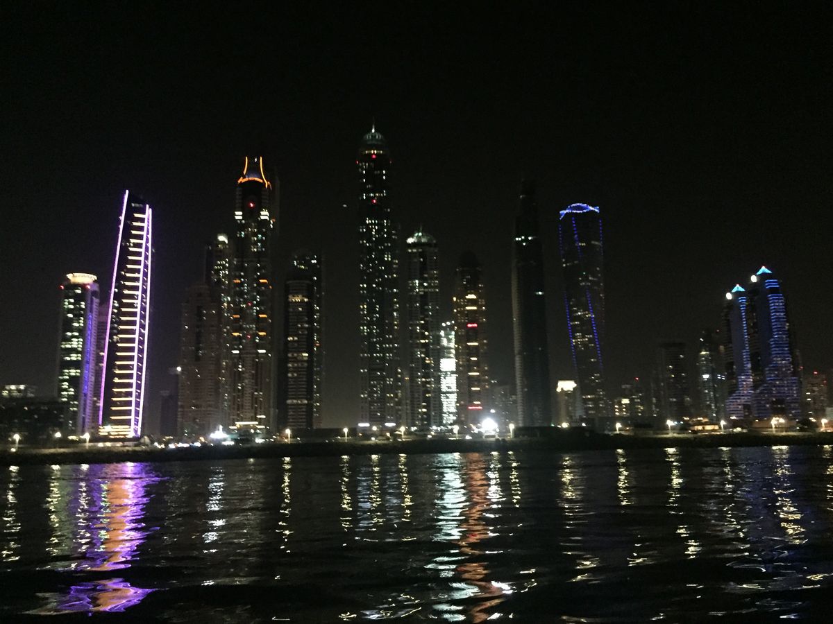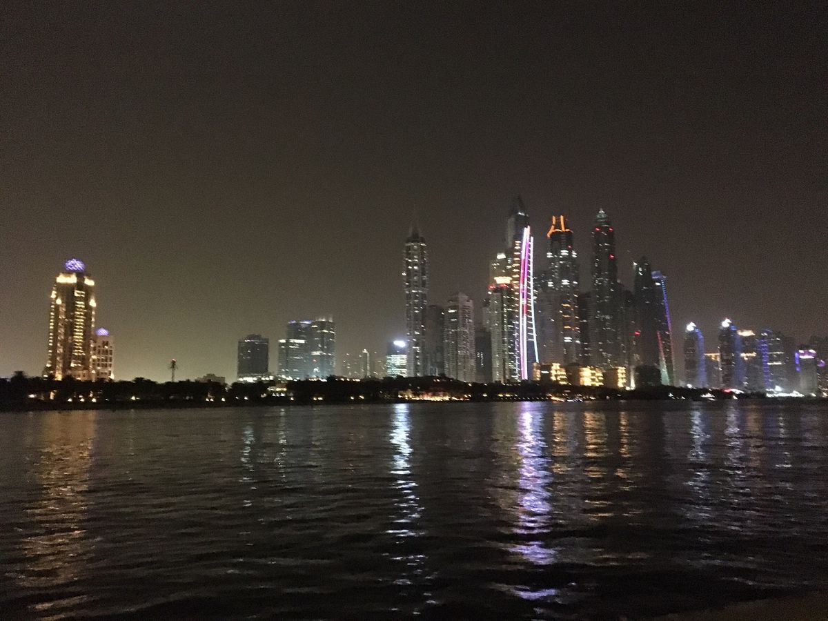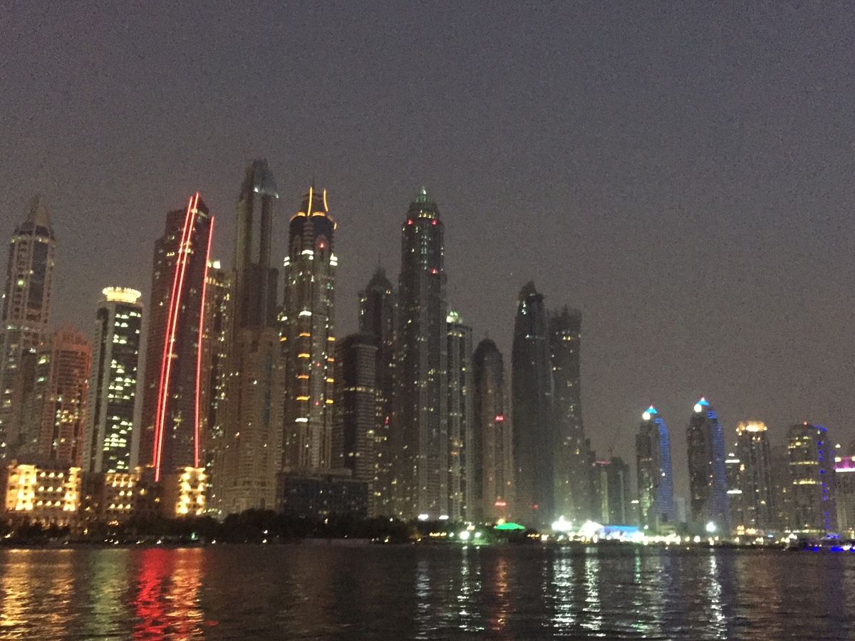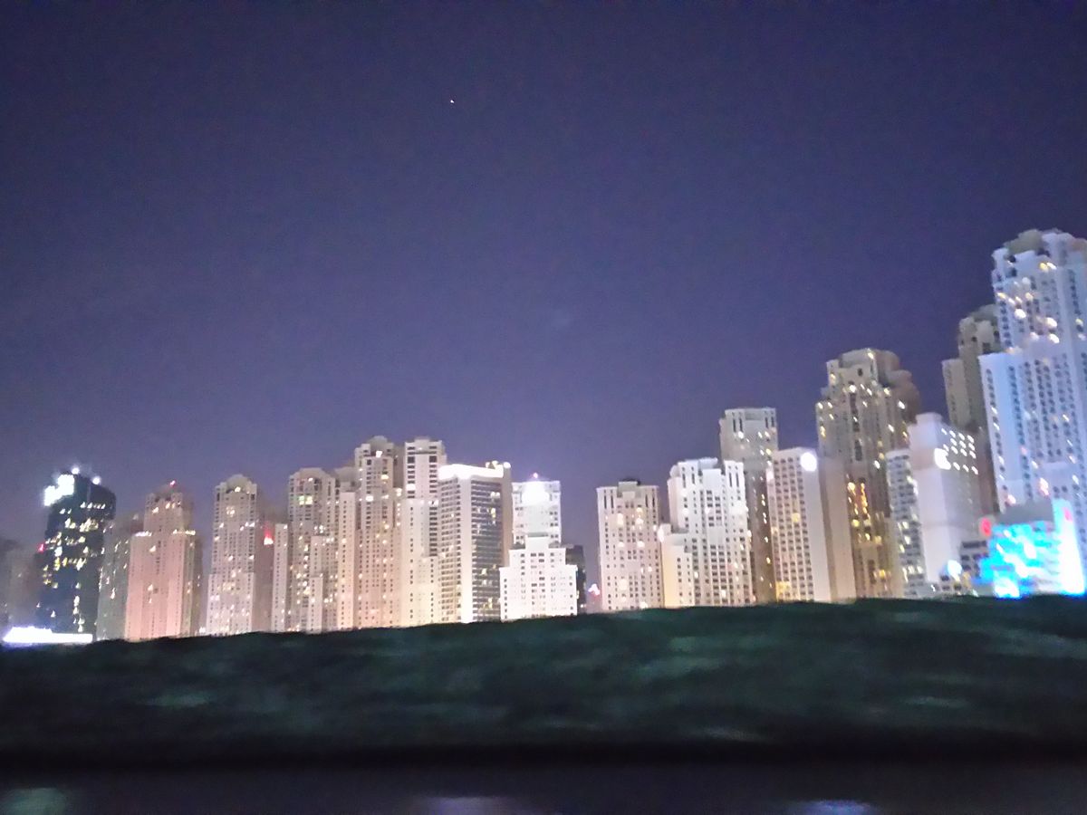 この後帰りのスピードは普通で、やっとドキドキがおさまった頃到着。ボートで揺れるし、スピードを出すときは荷物を持てないので、このツアーは写真はあまりうまくは撮れない気がします。むしろカメラが飛んでいかないかヒヤヒヤでしたし。思いのほかスリリングな体験になりましたが、海外での体験らしく、思い出になることは間違いないです。そしてドバイの夜景は本当に素晴らしかった。ディナークルーズのツアーと迷いましたが、こちらにして良かったと思います。