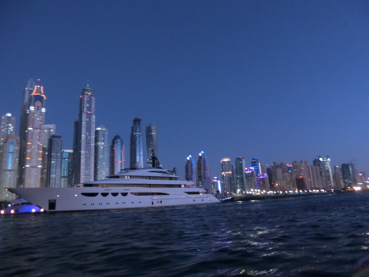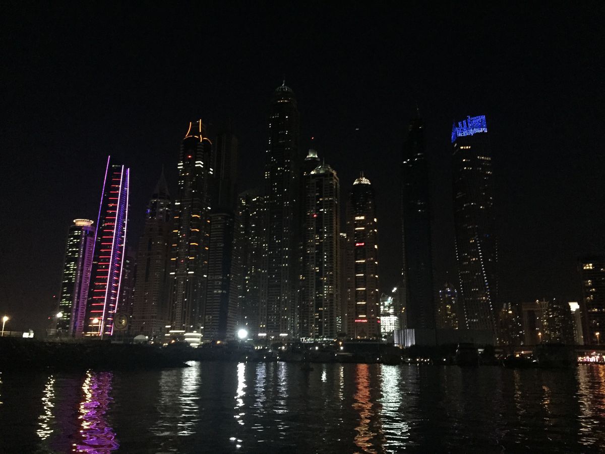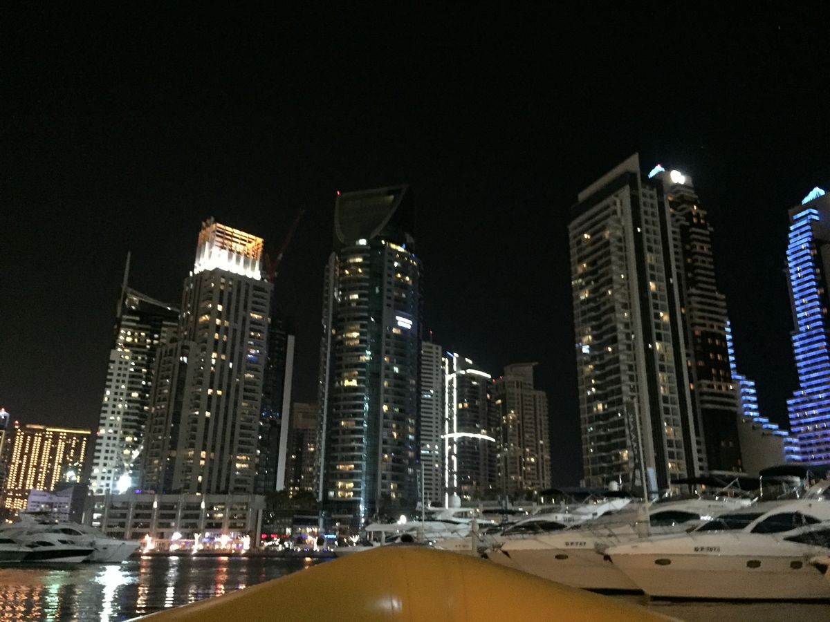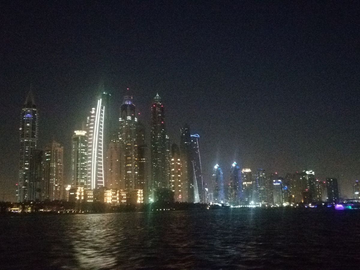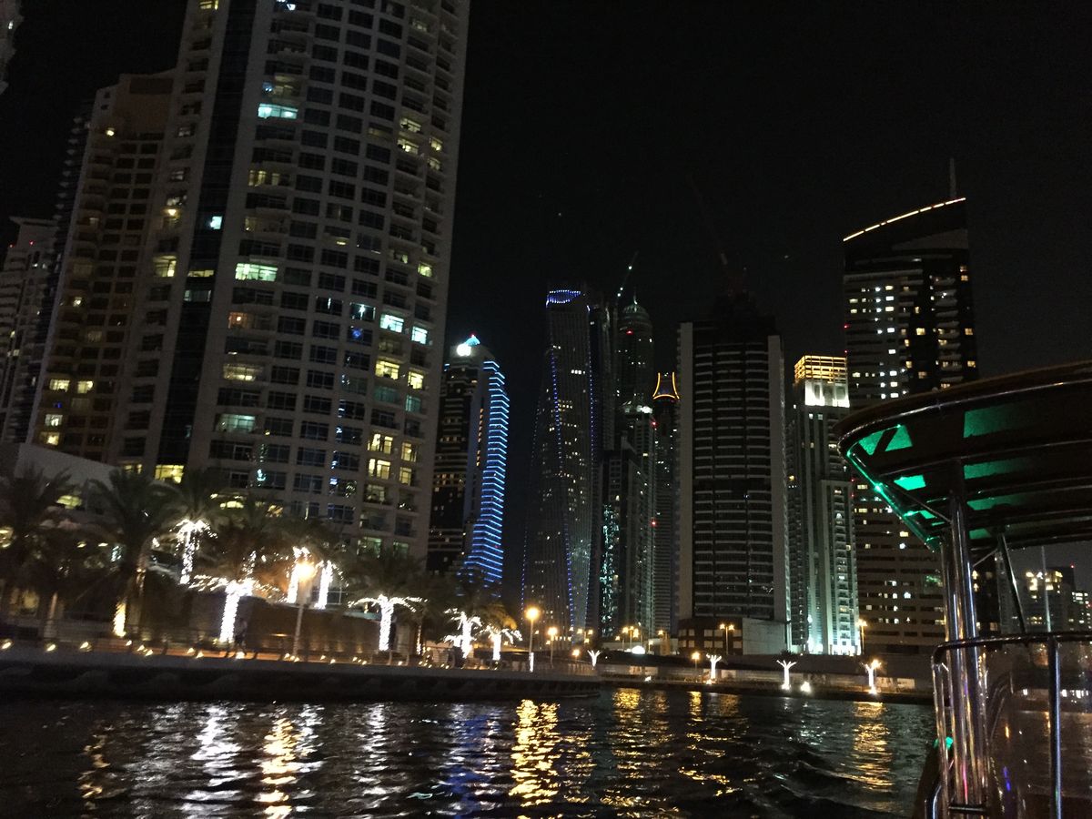 この後帰りのスピードは普通で、やっとドキドキがおさまった頃到着。ボートで揺れるし、スピードを出すときは荷物を持てないので、このツアーは写真はあまりうまくは撮れない気がします。むしろカメラが飛んでいかないかヒヤヒヤでしたし。思いのほかスリリングな体験になりましたが、海外での体験らしく、思い出になることは間違いないです。そしてドバイの夜景は本当に素晴らしかった。ディナークルーズのツアーと迷いましたが、こちらにして良かったと思います。