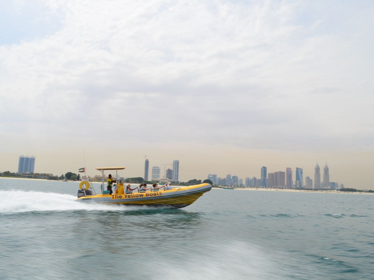 まず想像以上のスピードに興奮します!帽子や手に持っているカメラやビデオは飛ばされないように注意です。走行中は波の上をかなりジャンプするのでまともに座っていられません。足腰の弱い方は注意かもしれません。しかし元気な方はかなり楽しめます。かなりのスピードでも波で濡れることは一切ありませんでした。年末だったので富裕層のプライベートクルーザーが多く、並走したりそれもまた楽しかったです。海側から有名なホテルの写真を撮れます。ちゃんと写真撮影タイムがあり、ボートの舳先に座って写してくれます。ガイドは簡単な英語だったので理解できました。集合場所はマリーナエリアの真ん中なので降りてすぐ散策に向かいました。ドバイで暇を持て余す可能性がある方は絶対予約すべきです。