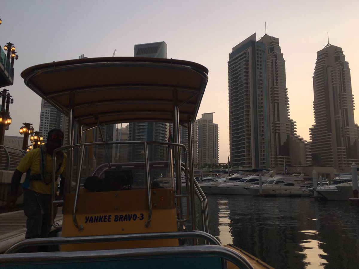 ビーチ沿いのJBR(ジュメイラ・ビーチ・レジデンス)のアパートメント・ホテルに宿泊していたので、集合場所まで歩いていきましたが、マリーナ地区が意外と広く、最後は間に合わないんじゃないかと、走って行く羽目に...。余裕を持って、集合場所に向かいましょう。