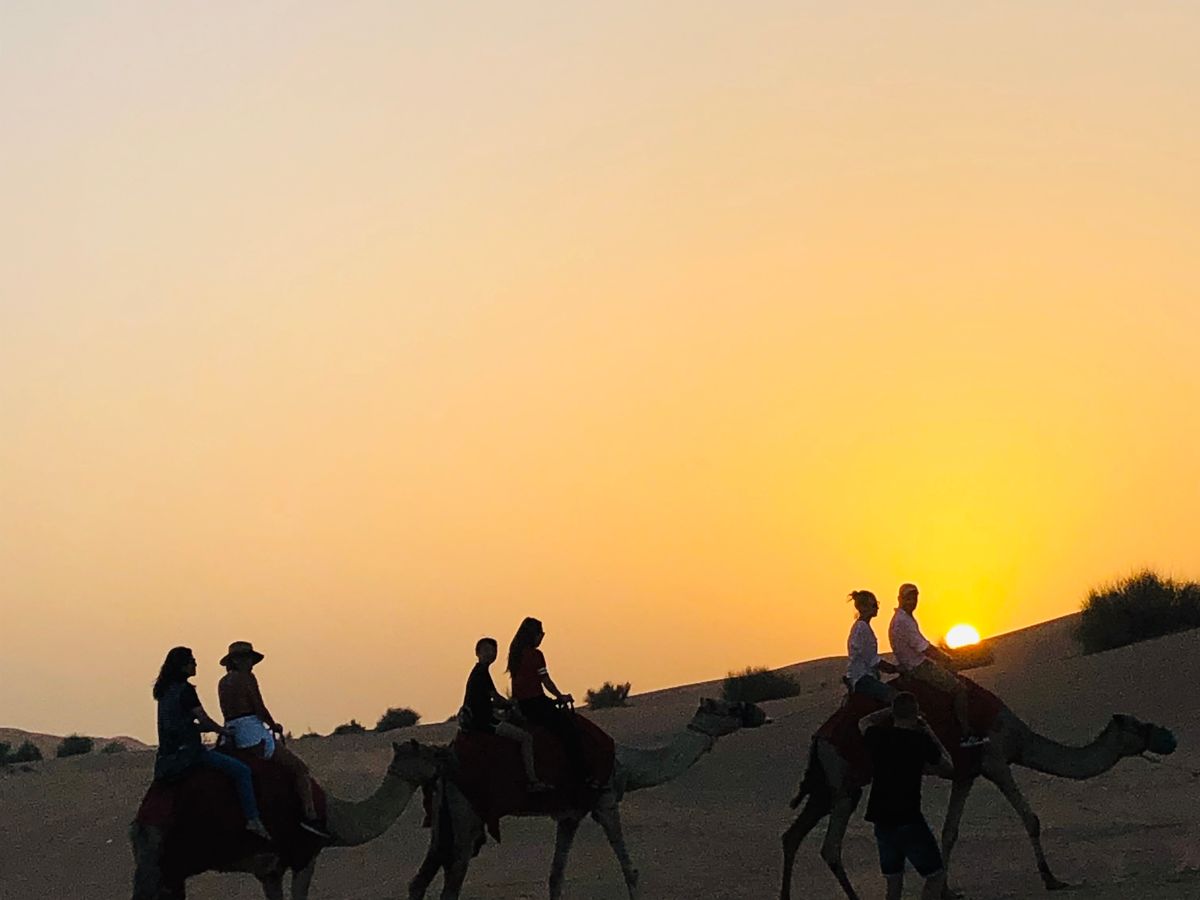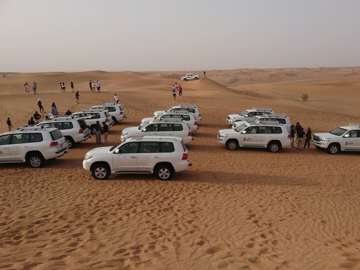 キャンプにおけるバイキングやラクダの試乗、サンドボードなどを体験できる。砂漠は日本に比べて非常に雄大であり、感激した。同じツアー会社のツアーで一斉に車で行くため、必ず一台で行くことはない。これは一台で行くと車が砂漠にはまり立ち往生することがあるため、決して何十台と車が連なって行くことにはなる。
