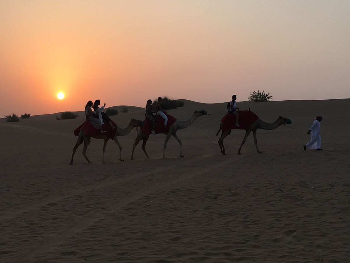 ファルコンショーを見て、ラクダに少し乗り、夕日と砂漠とラクダのシャッターチャンス!!ラクダは、乗ってみると意外と高く、お利口さんでびっくり!