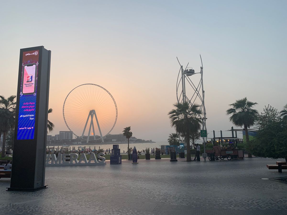 ドバイの日中は「刺さるような暑さ」です。バウチャーには「Jumeirah Beach Residence 1駅からすぐ。海岸に出ればすぐ見える」という説明がありましたが、駅に降り立った私たちには海も見えず全く方向がわかりませんでした。