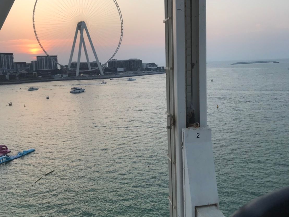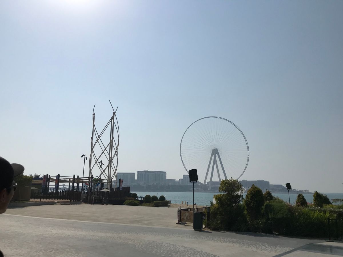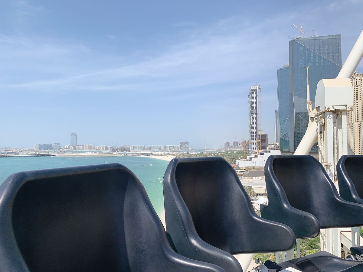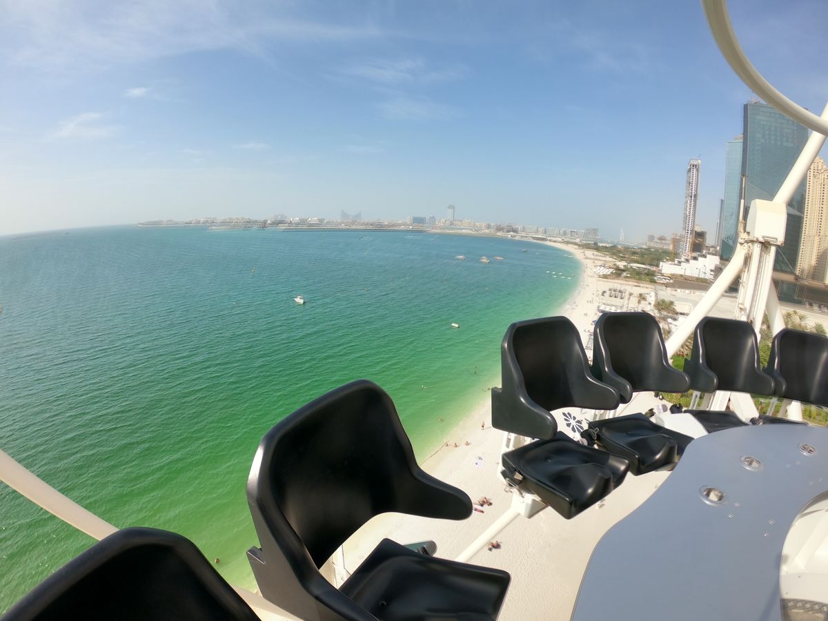 午前11時に行きましたが暑くて、上空で3分くらい止まっているのも暑かったです。なので、夕方以降に行かれるのがお薦めです。絶叫系ではないので、高所恐怖症でなければ、大丈夫なので、ドバイに行かれたら是非行ってみて下さい。オールドドバイから行ったので、少しわかりにくかったのですが、タクシーの運転手さんが調べて下さって無事に着けました。海沿いなので、ドバイビーチの雰囲気も味わえてとても良かったです。ドリンク付きも良かったです。