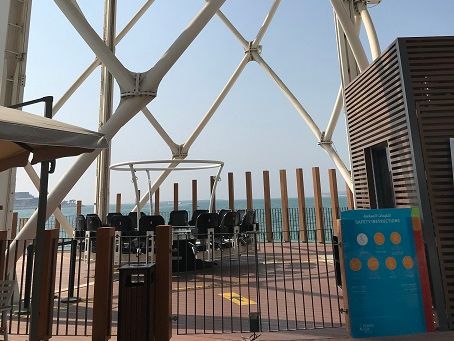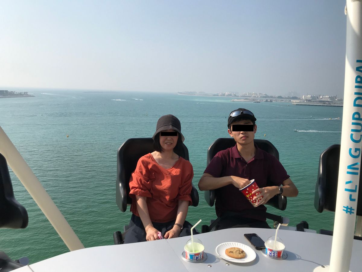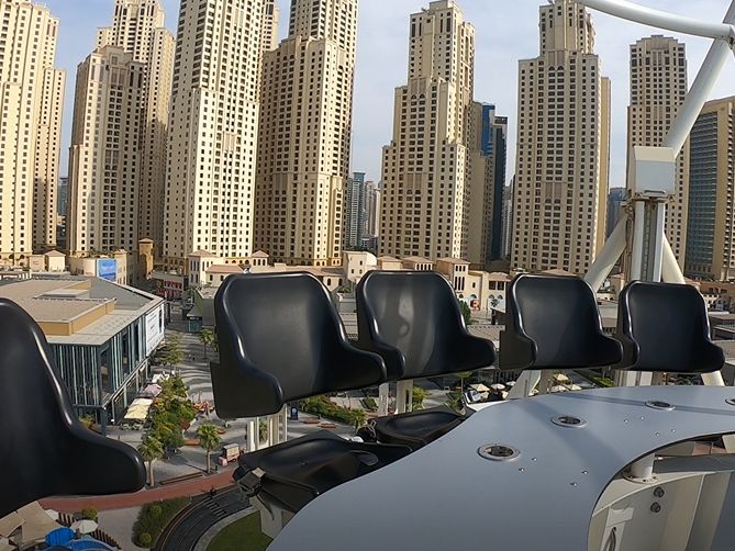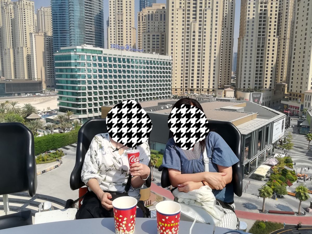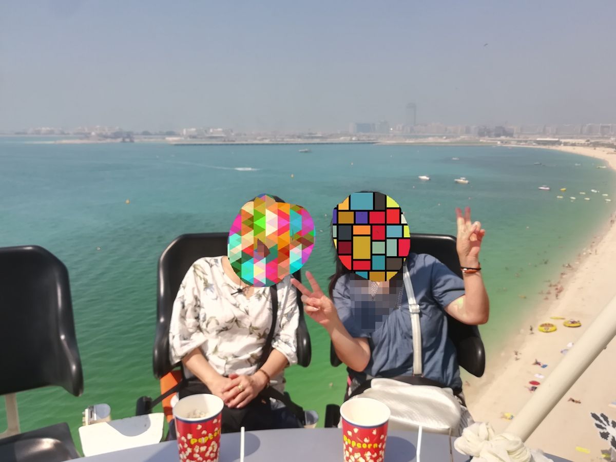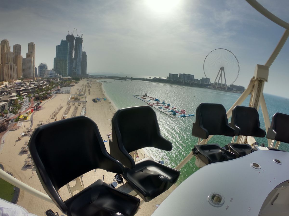 午前11時に行きましたが暑くて、上空で3分くらい止まっているのも暑かったです。なので、夕方以降に行かれるのがお薦めです。絶叫系ではないので、高所恐怖症でなければ、大丈夫なので、ドバイに行かれたら是非行ってみて下さい。オールドドバイから行ったので、少しわかりにくかったのですが、タクシーの運転手さんが調べて下さって無事に着けました。海沿いなので、ドバイビーチの雰囲気も味わえてとても良かったです。ドリンク付きも良かったです。