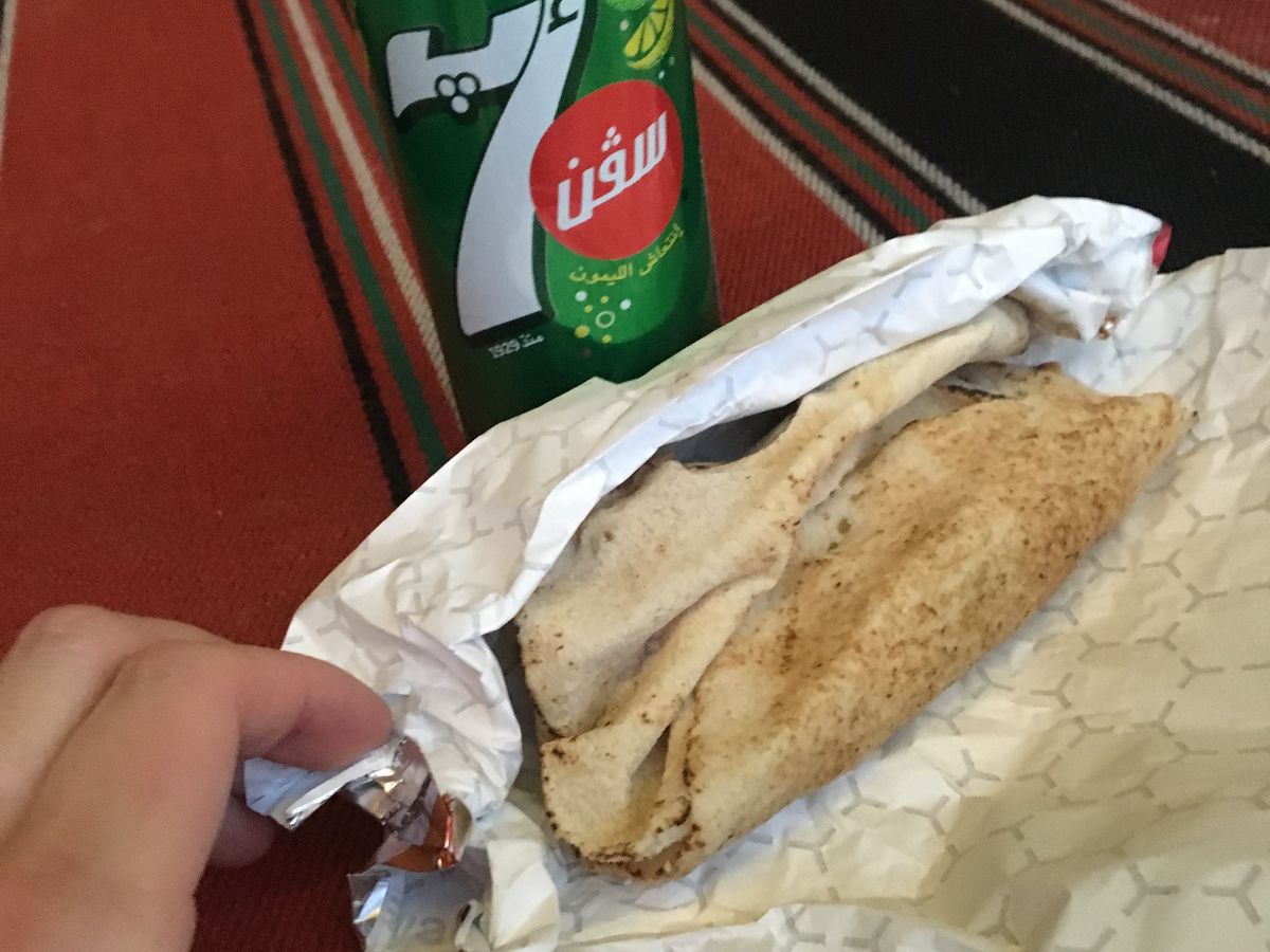 ランクルで迎えにきてもらって、そのまま砂漠へ。 途中1回、ガソリンスタンド併設のコンビニでトイレ休憩がありました。