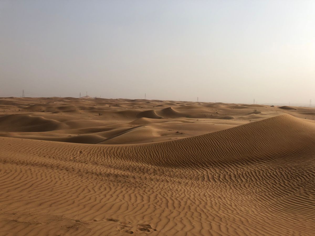 せっかく砂漠での写真なのに背景に電線や鉄塔が写り込む位置だったり、車の轍が付きまくっているところを背景に写真を撮ろうと促してくるので、なるべく起伏のある砂丘の綺麗なところに自分で移動してシャッターを押してもらいましたが、ガイドのおじさんにはそういった意図が伝わらず、逆光だから反対側に立て!と背景の汚い方向に発たせようとしてきたりして、残念でした。