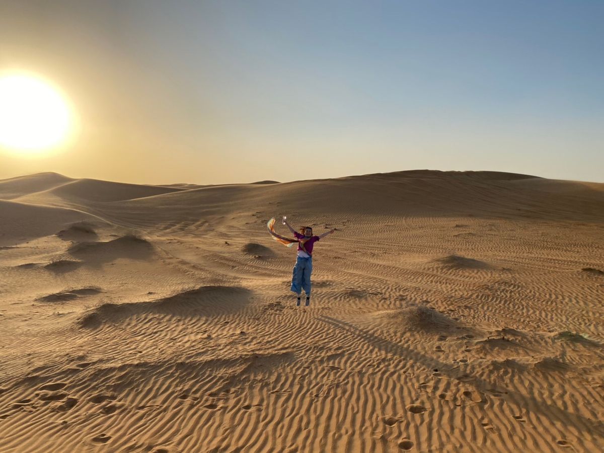 ドライバー(担当ガイド)さんが砂漠で沢山良い写真を撮ってくれました。連写でトリック写真のような面白い写真もいくつも撮ってくれたので、とても良い思い出です。