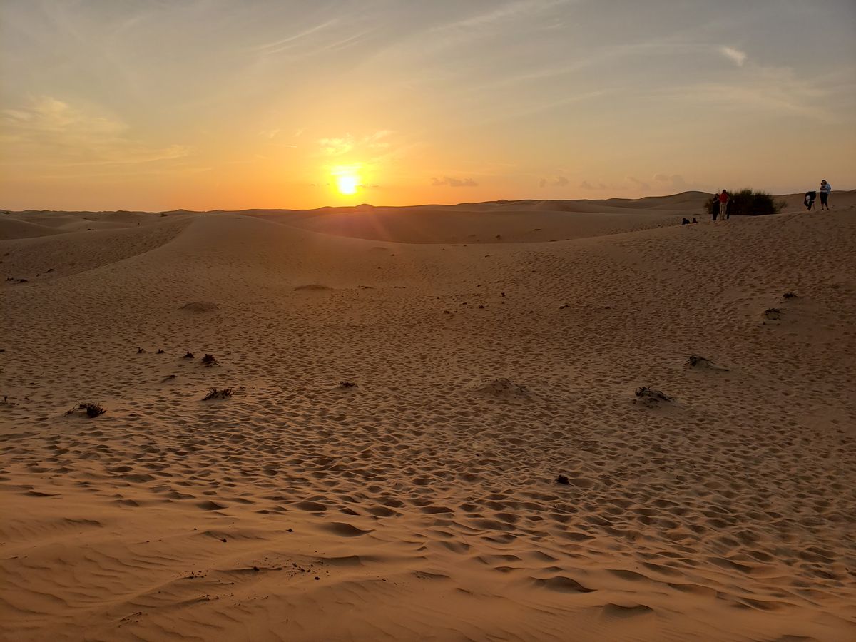 初めての砂漠は暑くて食べ物は正直なところあまり好みではありませんが、砂丘のサンセットは素敵でした。