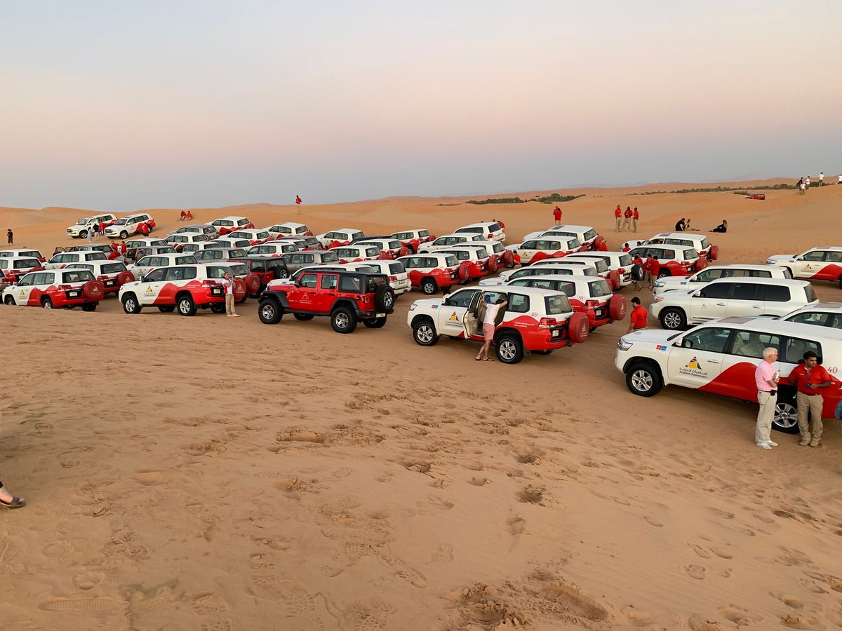 4WDのランクルが並んで砂漠を走る光景はとっても幻想的で、ジェットコースターのようなアトラクション感覚を味わえました。