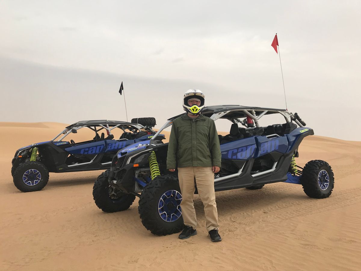 ドバイ市内から40分位、車で移動した砂漠でバキー体験をしました。
