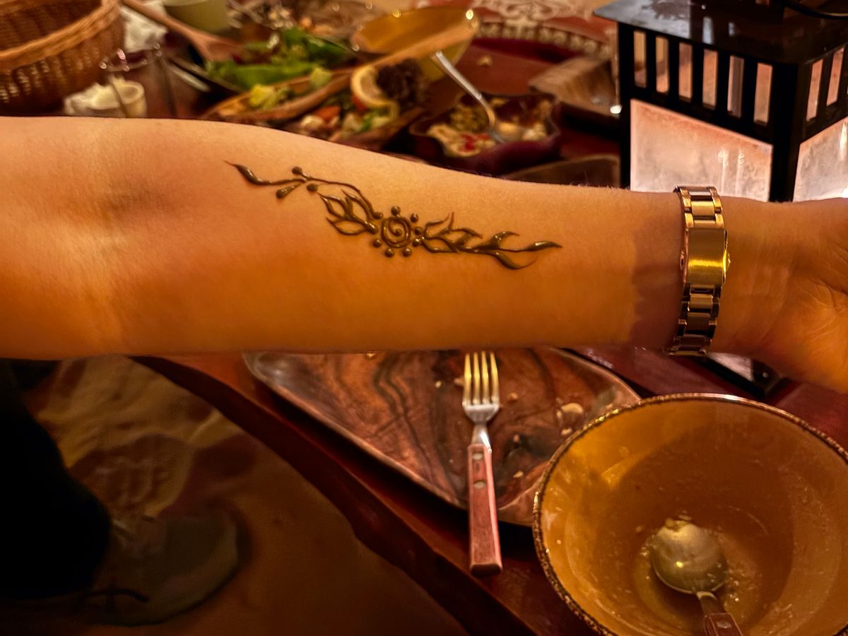 食べている間にラクダに乗ったりヘナタトゥーをしてもらったり水タバコが吸えたりゆっくり自由に楽しめます。