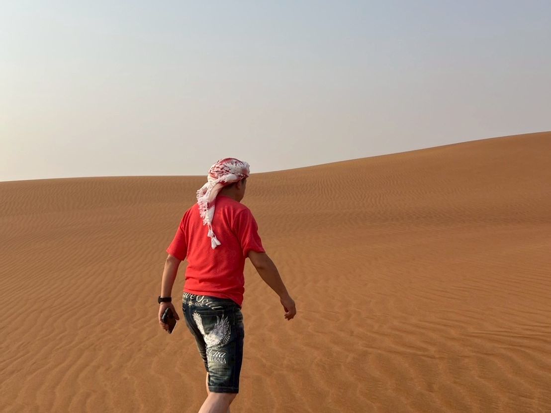 砂漠ツアーを申し込もうとしたら、70歳以上はダメとあった。せっかくのドバイなので、他のコースを探すと、ドバイ旧市街の見学が付いて、砂漠だけは7千円が3万円だったが、申し込んだ。しかし、実際の砂漠ツアーは、一般の人と一緒で、何で4倍以上支払いが必要だったか、納得が行かない。砂漠ツアーそのものは十分楽しんだが、値段が残念でした。