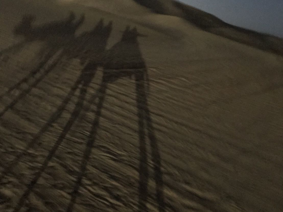 とても長い時間砂漠をドライブして、ラクダに乗るころは日が落ちてしまいました。