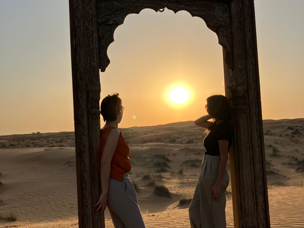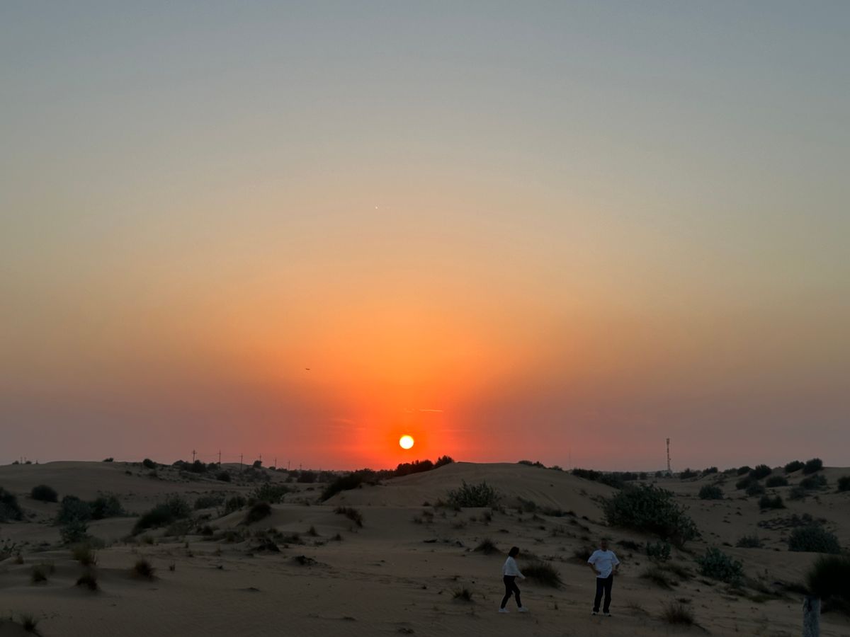 夕日スポットでは、ドライバーさんが写真映えするベストスポットを熟知していて、たくさん写真を撮ってくれました。写真を撮り終えた後は、ただただ広がる砂漠に沈む夕日を、ゆっくり鑑賞しました。あの幻想的な景色はドバイに行く度に見たくなる絶景です。