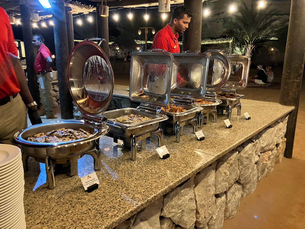 夕食ブュッフェは個人的にはとても美味しくて、全種類食べられないのが勿体無いくらいでした。味付けは濃いめ、辛め?で風味が良くてご飯やパンが進みました。合間にラクダ乗りを楽しんだり、ナイトショーを見たりと非常に充実した時間を過ごせました。特にファイヤーショーは圧巻でつい見入ってしまうほど素晴らしかったです。