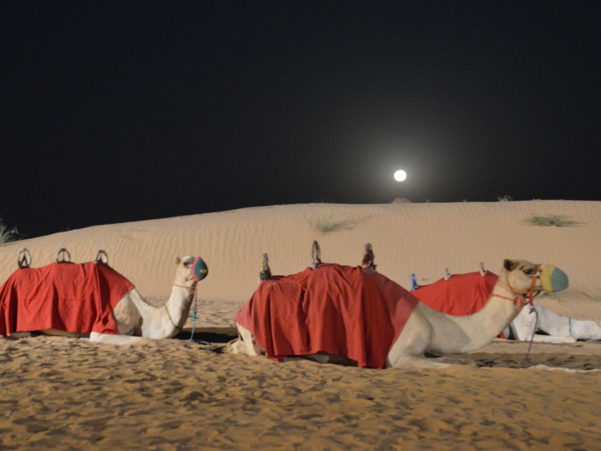専用キャンプサイトではラクダにも乗れましたし、ちょうど中秋の名月翌日の満月の夜だったので、砂漠でラクダと満月の写真も撮ることも出来ました。夕食はシシカバブをはじめアラビアンを感じることができる料理を、お腹一杯食べることができました。素敵なショーもあり充実した半日でした。