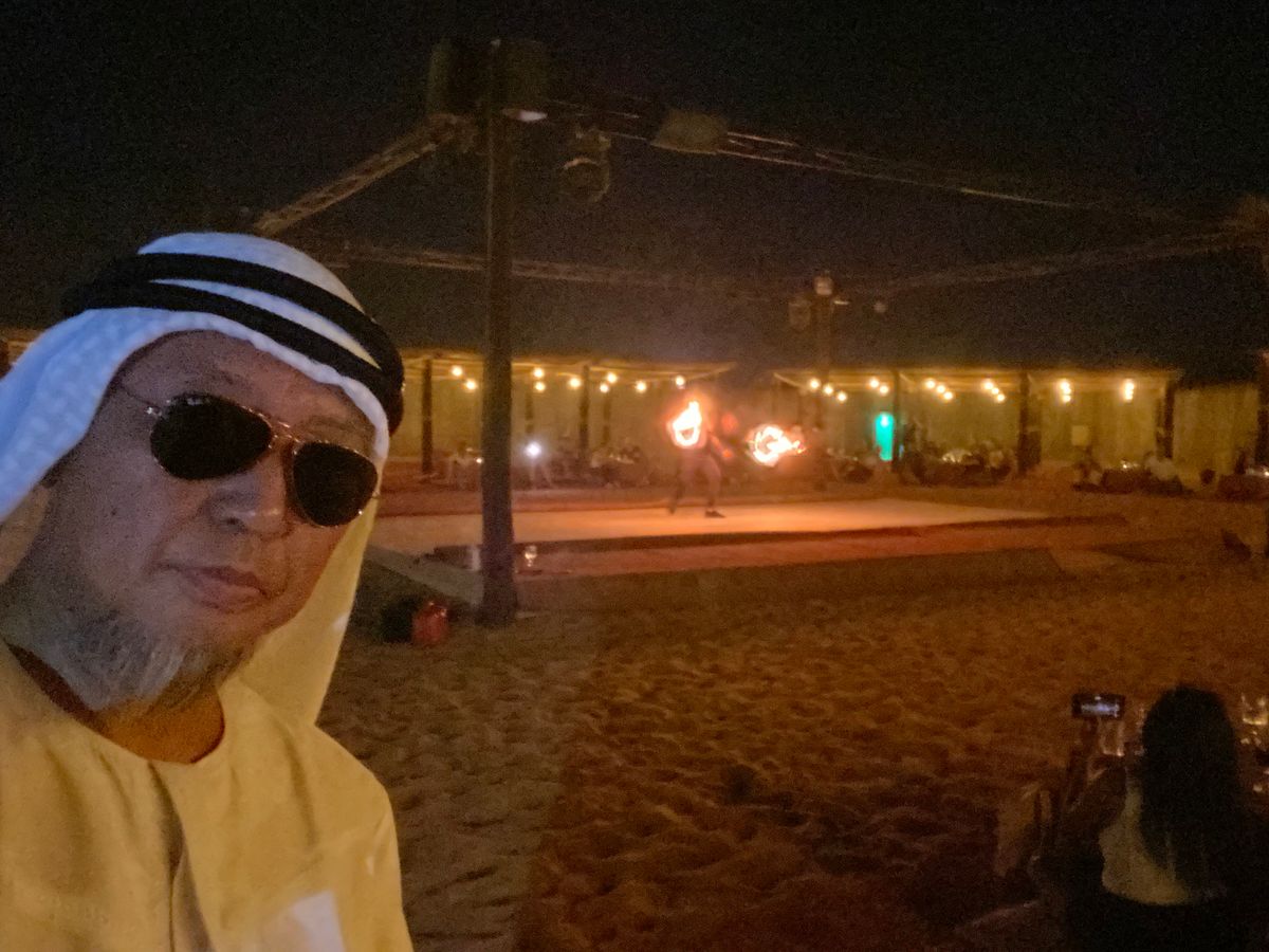 午前中は、日本語が話せるガイドの案内で、スパイススーク、ゴールドスークや保存地区を回り、午後からRV車の出迎えで砂漠に向かい、道なき砂漠のなかを激しく走行して、砂漠のなかのキャンプでの食事とドリンクを頂いて、ショーの前には、ラクダ搭乗やサンドボードやタッー、水パイプタバコを自由に体験して、ファイヤーショーやベリーダンスを鑑賞さて、ホテルまで送って貰いました。一日中楽しめて良かったです。
