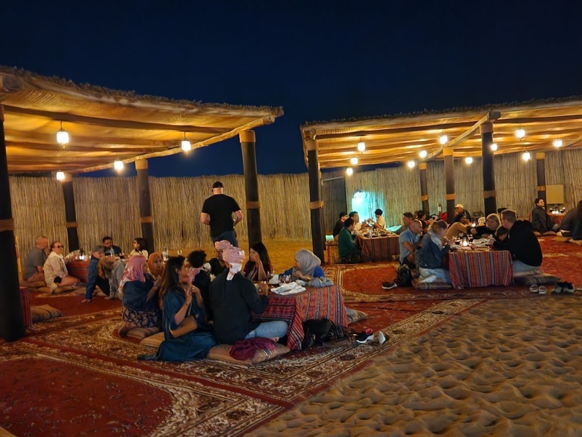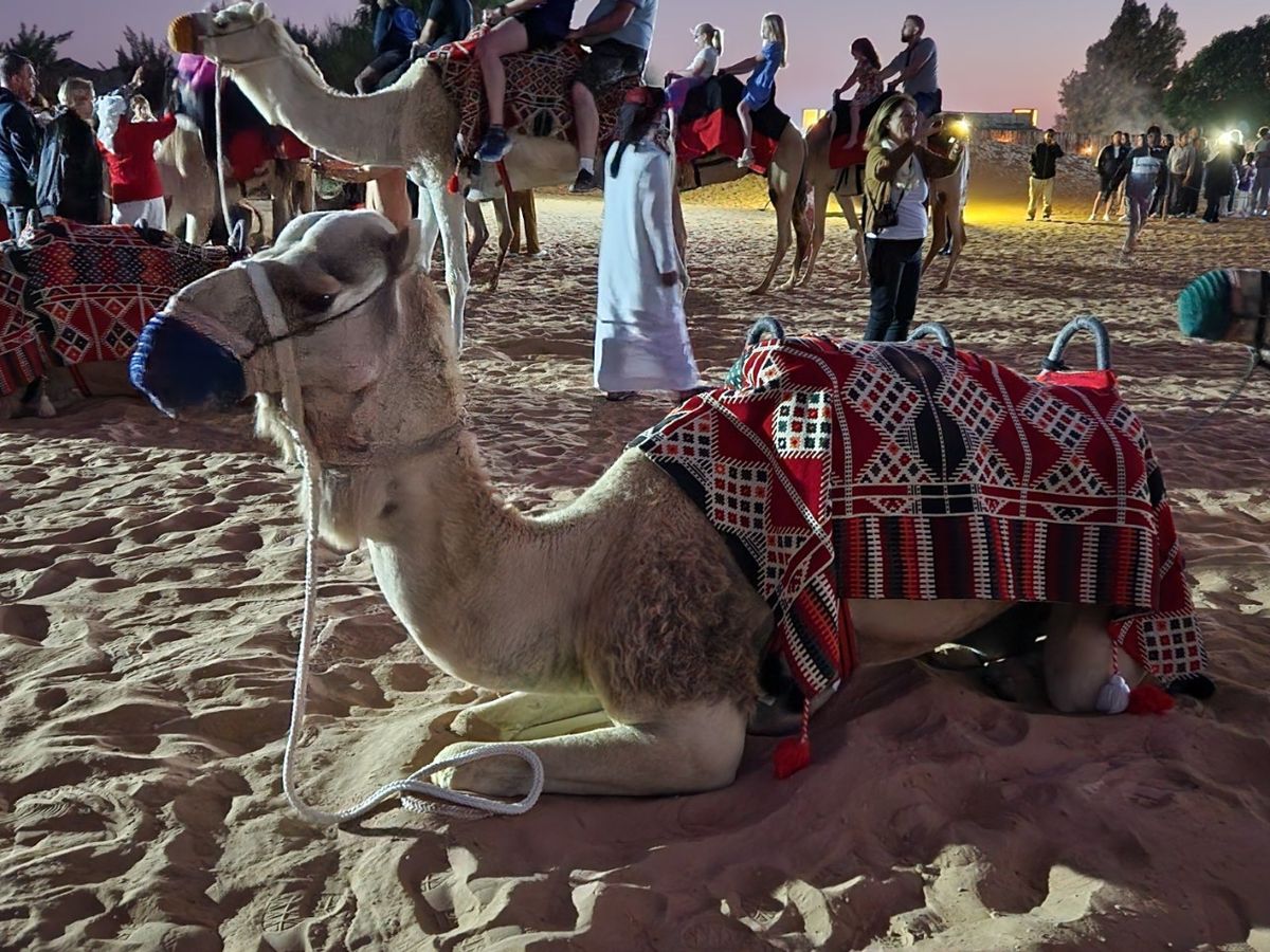 30歳代から70歳代まで5人の女性グループでの参加でした。デザートサファリは30分くらい走った後、写真タイムも楽しかった。ラクダちゃんの牧場で写真撮れたのも嬉しかった。キャンプでBBQを食べたり、ヘナ体験、ハヤブサとの写真、ラクダ体験。さらには4種類のダンスやファイヤーショーの鑑賞など盛りだくさん!グループ割で7000円未満。めちゃお得で楽しかったです。