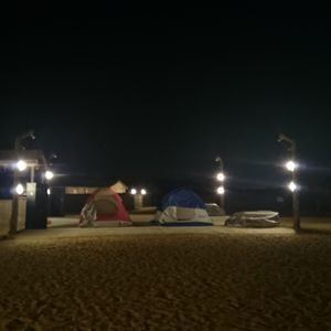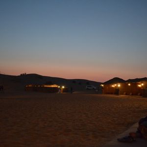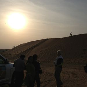 友人と3人で参加しました。約30名の参加者の皆さんとの楽しいイベントに参加。夜のバーベキューの後は私たちだけが砂漠に宿泊でした。夜の砂漠の砂はひんやりしてちょっと肌寒かったですが、テントとマットレス・寝袋を用意してくれるので心地よく過ごせます。22:30には消灯し真っ暗になります。ただ砂漠の反射のせいか、空が薄明るく星はあまりよく見えません。ドバイ空港は24時間稼働しているので時々飛行機の音が聞こえます。現在の日の出は5:30、砂漠の地平線から昇る太陽には感動しました。総体的に素晴らしい経験でした。