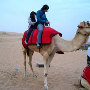 女4人で参加。ホテルから、車を走らせること約1時間、砂漠に着く前から、友達は車酔いに。砂漠で4WDで走った時は途中で止めていただいたほど酔ってました。酔いやすい人は酔い止めを飲んで、なるべく前の席に座った方がいいかもしれません。砂漠でラクダに乗ったり、ヘナペイントしたり、水タバコしたりと色んな体験が出来たのは、大変いい思い出になりました。ただ、晴れていましたが、星はそんなには見えませんでした。ドバイの空では難しいのかなぁ。でも、朝日は綺麗でしたし、ドバイでテントで寝るという経験ができたこと、ホテル代が浮いたことを考えると、私は申し込んでよかったと思います。