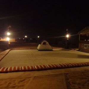 正月に利用。半日でもよかったかなとは思いましたが、砂漠で一泊という体験がしたかったので満足でした。半日体験のできるキャンプエリア内でのベリーダンスをやる舞台の上に三角テントを張ったお泊りでした。寝袋は暑いくらいで調度よかったです。「月の砂漠にポツネン」を期待するなら違います。夜10時に消灯までは四方からライトアップ状態です。頭上には飛行機が間近で飛び、高速道路の明かりもすぐ近くに見えますので「砂漠ー!」という感じではありません。星空も都内と変わらない印象ですが、夜空が明るいので夜中の3時から4時くらいでやっとたくさん見えると気づきました。しかし、朝日は果てしなく続く砂の向こう側に出てくれました。時期によっては高速道路側に出たらがっかりだったかもしれません。やりたいことは半日ツアーですべてできます。ヘナタトゥーはチップを渡したらちょっと多めに描いてくれました。伝統衣装への着替えも写真をMYカメラでバシバシ撮ってくれて良い記念になりました。砂はサラサラで坂を歩くと足首より上まで埋もれますのでビーサン必須。でも砂浜のようにザラザラした感触は全くありませんので不快ではなかったです。水シャワーがありますが、男性トイレの裏側にしかないので女性だけの参加はシャワー無しも覚悟かなと思います。でも水シャワーは寒そうで利用する気にならず。ボディ拭きシートがあると便利かもしれませんがサラサラなので「汚れる」感じはあまりありません。何度も言います。お泊りがしたかったので満足です。