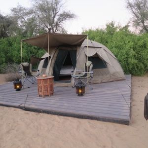 宿泊する人は少ないらしいというのは他の方の書き込みでも見ていましたが、やはり私たち二人だけでした。ホテルに迎えに来てくれたドライバーさんがずっとそのままデザートサファリからキャンプまで面倒を見てくれました。私たちのためだけに夜も近く(たぶん近くの駐車場)にいてくれて、朝食の準備もしてくれてとてもありがたかったけど、ちょっと申し訳ないほどでした。すごくいい方で、道中も市内の見どころも説明してくれたり、車窓から写真を撮ったらいいよ、と少し速度をゆるめてくれたりと楽しく過ごせました。