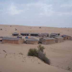 深夜,風の音で目を覚ますと,砂嵐でテントがバタバタ揺れています。さらにガイドが「7年間で初めて」という雨も降りだし,「砂漠に雨」という貴重な体験もできました。